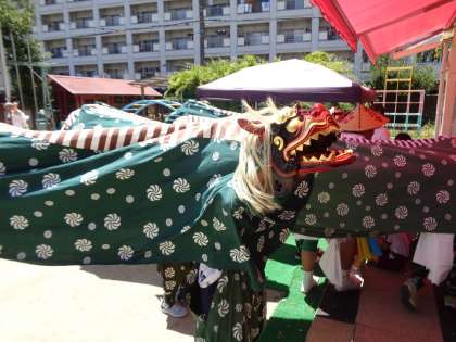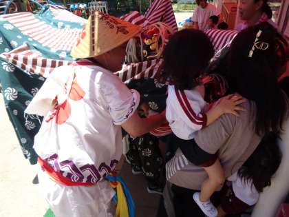地域の夏祭りで、獅子舞が幼稚園に来てくれました。