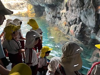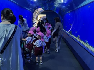海遊館に入ると、魚のトンネルがあり、子どもたちを出迎えてくれました。