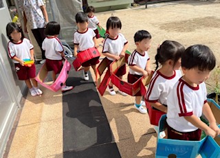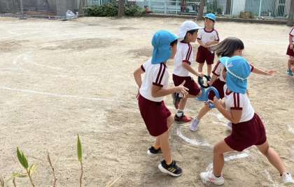空組の子どもたちが、「リレーをしよう!」と自分たちで準備を始めました。