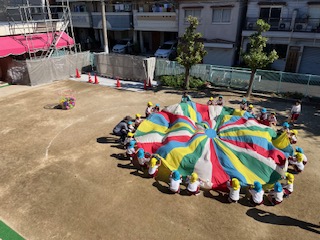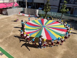 パラバルーン 公開日 2023/10/23 更新日 2023/10/23 幼稚園日記 パラバルーンに懸命に取り組んでいた空組の子どもたちの姿に、憧れを抱いている黄組の子どもたちです。 「一緒にパラバルーンをやってみたい!」と念願叶って、嬉しそうです。隣で空組が優しく声をかけながら、一緒に楽しんでいました。 いいね(0)