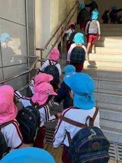 今日は大阪城公園への園外保育です。 子どもたちは元気に出発しました。