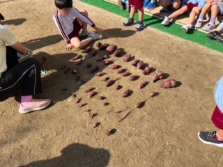 芋掘り 公開日 2023/11/01 更新日 2023/11/01 幼稚園日記 いろいろな大きさのサツマイモがとれました。 収穫したサツマイモを並べて、大きさ比べをしたり、数を数えたりしました。 いいね(0)