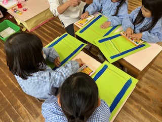作品展に向けて 公開日 2023/11/27 更新日 2023/11/27 幼稚園日記 いよいよ作品展が近づいてきました。 いろいろな素材や自然物を組み合わせて、思い思いにつくることを楽しんできました。 桃組の子どもたちは、つくった電車を飾るために、「線路がいる!」と歌を歌いながら線路をつくっています。 いいね(0)