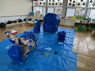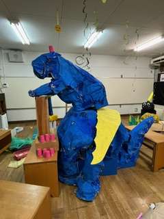 作品展に向けて 公開日 2023/11/27 更新日 2023/11/27 幼稚園日記 空組の子どもたちが、大きな新聞紙のかたまりに青色を塗っていました。大好きなお話に出てくるりゅうをつくっていると教えてくれました。 子どもたちが帰ってから、先生が組み立てると、大きなりゅうが! 明日の朝は、みんなでつくったりゅうが迎えてくれますよ。 いいね(0)