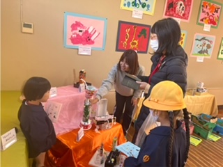 先生たちが、一人一人の子どもたちの思いや工夫したところなどを、保護者の方に伝えていきます。