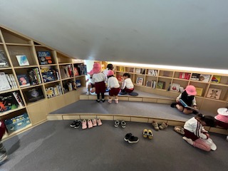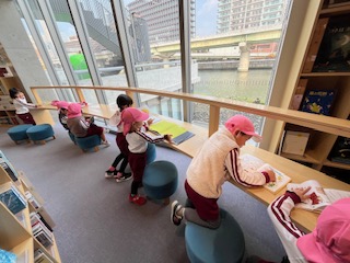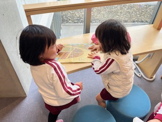 自分の好きな場所で、絵本を読んでいます。