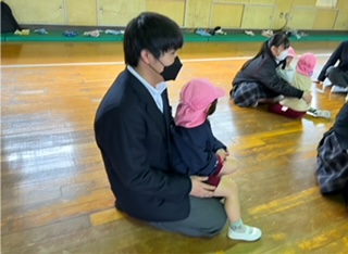桃組の子どもたちは、お兄さんお姉さんの膝の上に座らせてもらいながら遊ぶ姿も見られました。