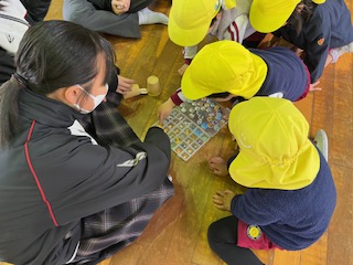 幼稚園を出発する時から「楽しみ!」と伝えていた黄組の子どもたちは、嬉しそうにおもちゃで遊んでいました。