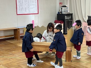 お話に合わせてごっこ遊び 公開日 2024/01/24 更新日 2024/01/24 幼稚園日記 お話に出てくる椅子を、友達と一緒に積み木を組み立ててつくります。子どもたちの大好きな場面の一つです。 いいね(0)