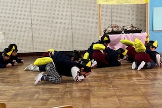 今日の劇遊び 公開日 2024/01/29 更新日 2024/01/29 幼稚園日記 キツネたちが、見つからないようにパンやさんに近づいていきます。黄組の子どもたちの大好きな表現の一つです。先生のピアノに合わせてピタッと動きを止めることも楽しんでいます。 いいね(0)