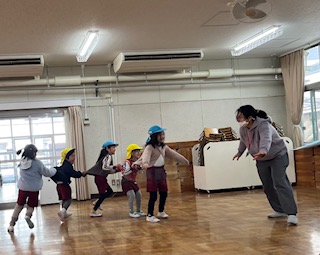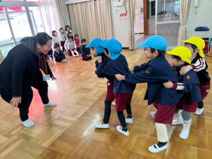 手や指でいろいろな生き物を表現する手遊びをしたり、鬼遊びをしたりする中で、中国の言葉にも耳を傾けることができました。