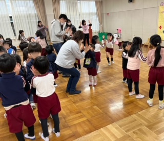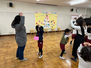 雪だるまのフォトフレームをもらったり、保護者の方とダンスをしたりしました。
