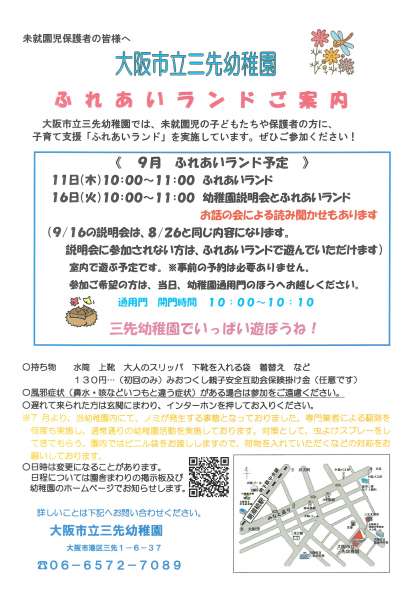 9月のふれあいランドは、11日(木)と16日(火)に実施します。