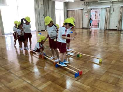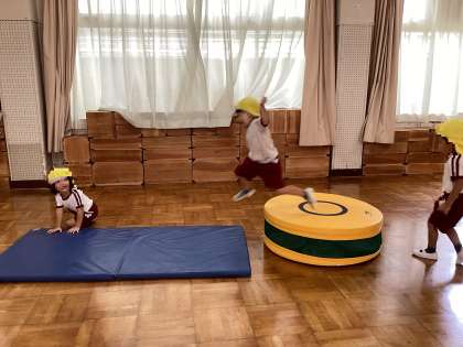 リズム室で体を動かして遊びました 公開日 2025/09/03 更新日 2025/09/03 幼稚園日記 猛暑が続く中、外へは行けないけれど、リズム室でフープや運動棒、ジャンピングなどを使って、思い切り体を動かして遊びました。跳ぶ、飛び降りる、バランスをとる、走る、などいろいろな動きを取り入れて、自分の体をいろいろ使えるように楽しい活動を考えています。 いいね(0)