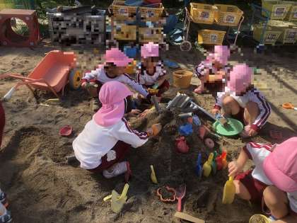 友達と一緒は楽しいね 公開日 2025/10/28 更新日 2025/10/28 幼稚園日記 ようやく秋らしくなり、園庭でも気持ちよく遊んでいる桃組。友達と誘い合っていろいろな遊びを楽しんでいます。先生に見つからないように砂場のネット裏に隠れたり、「今日は、誰の誕生日ケーキにする?」とお話しながら砂場でケーキをつくったり、保育室で、運動会で使ったサナギの囲いの中で、のんびり図鑑や絵本を楽しんだりと、友達との関わりが広がっています。 いいね(0)