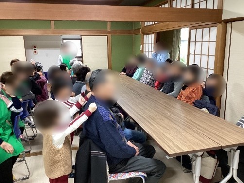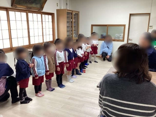 初めて黄組が三先憩いの家に行きました。どんなことをして地域の方と一緒に遊びたいか話をすると、「歌を聴いてもらいたい!」と大好きな歌を歌うことにしました。憩いの家に到着すると、たくさんの地域の方々が温かく迎え入れてくださいました。初めは緊張していた黄組の子どもたちも一緒に歌を歌ったり、「かたたたき」の歌に合わせて触れ合って遊んだりして、とても楽しい時間を過ごすことができました。「楽しかった!」「空組になったらまた行けるかな?」と来年に期待を膨らませています。