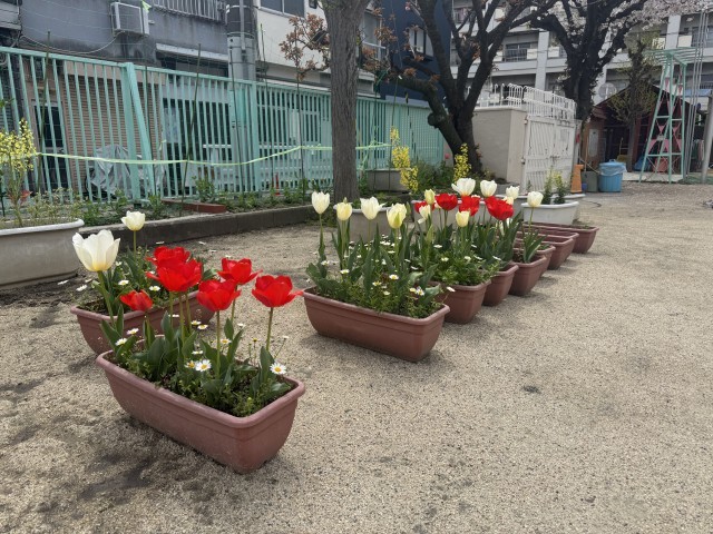 園庭のお花も先生たちも、みんなが元気に登園するのを待っています♪