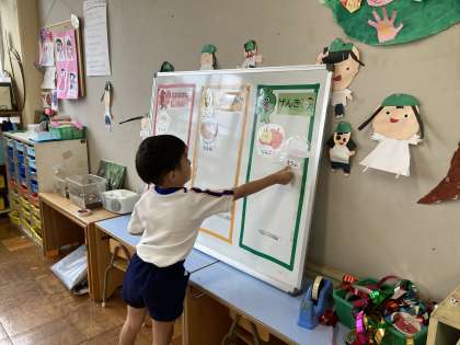 ぱくぱくパワー!!! 公開日 2024/05/16 更新日 2024/05/16 保健指導 5歳児クラスで3色食品群に関する話をしました! あかパワー、きいろパワー、みどりパワーにはそれぞれどんな食べ物があるかな?子どもたちと一つひとつ考えながら食べ物カードを3つのパワーに分けました(*^^*) 最後には「ぱくぱくパワーダンス」をして3つのパワーを体で楽しく覚えました!今日のお弁当には何パワーが入っていたかな?(^O^) いいね(0)