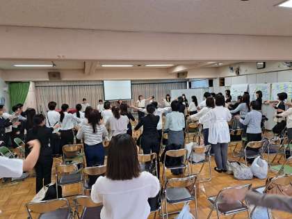 昨日、タイトルにあります研究テーマにおいて、研究保育を行いました。遊戯室でのサーキット遊び、玄関ホールにある大きな鏡の前でのダンスコーナー、保育室でのダンゴムシコーナーなどで、存分に体を動かして遊ぶ子どもたちの様子を見ていただきました。今後も子どもも教師もわくわくするような環境構成の工夫を、職員一同がんばっていきます!!