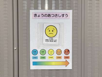 子どもたちは毎朝掲示を見て、レベルに合わせて熱中症予防をしています!