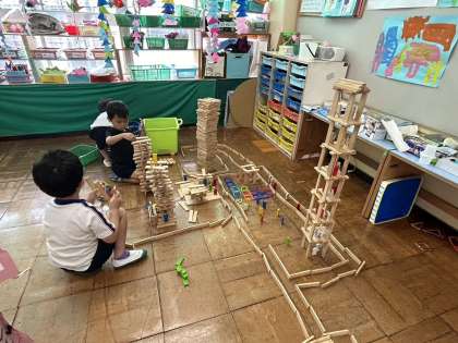 保育室では♪ 公開日 2024/06/21 更新日 2024/06/21 きょうのようちえん 年長児が、たくさんのカプラで街を作っています(*^▽^*) 泥遊びをした子どもたちは、どろんこ怪獣がでてくる紙芝居を見て「僕も怪獣になってみたいな〜」と話していました♪ いいね(0)