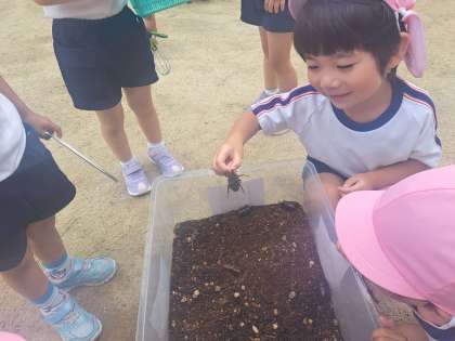 カブトムシたちが生まれました〜!おめでとう!!土の中で、がんばって大きくなりました(*^^*)みんなで大切に育てましょうね♪