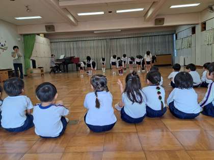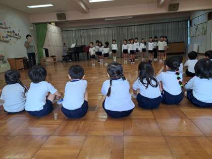 5歳児が音楽会で歌う歌を、3歳児4歳児のお客さんの前で歌いました♪