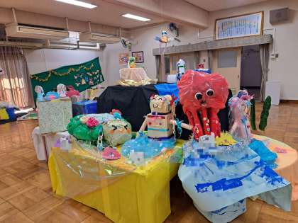 作るの楽しい〜♪ 公開日 2024/12/07 更新日 2024/12/07 きょうのようちえん 本日、作品展を行いました。5歳児は「うみのいきもの」4歳児は「おみせやさん」3歳児は「うめ組ランド」を作りました♪たくさんのお家の人にみてもらってよかったですね(*'▽') いいね(0)