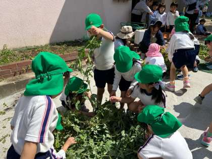 スナップエンドウ収穫 第2弾! 公開日 2025/04/30 更新日 2025/04/30 きょうのようちえん 先日の収穫後も、どんどん増えてきたので、収穫第2弾! 5歳児が収穫していると、4歳児も集まってきて、一緒に収穫しました。 たくさん採れたので、大喜びでした(^^♪ いいね(0)