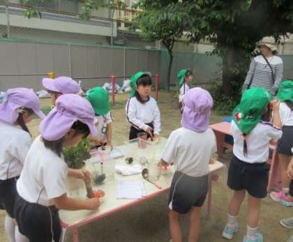 一緒に園庭で遊んだ後、5歳児となかよし遊びをして過ごしました。