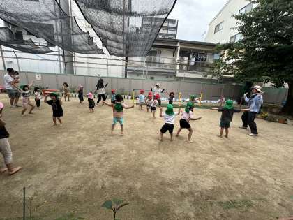 今月2回目の「なかよしランド」では、未就園児の友達と一緒にダンスを踊りました。
