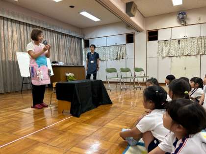 お話って楽しいね(^^♪ 公開日 2025/07/03 更新日 2025/07/03 きょうのようちえん 「絵本の会大正」の方々による「絵本の会」(^^)! 絵本の読み聞かせだけでなく、エプロンシアターや手遊びもあり、 あっという間の楽しい時間でした。 いつもありがとうございます(^^)/ いいね(0)