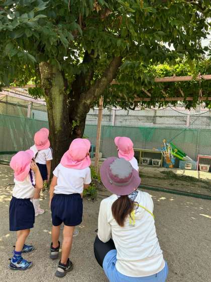 桜の木まで連れて行くと、セミはどんどん登って行きました。子どもたちは、見えなくなるまで見守っていました^_^