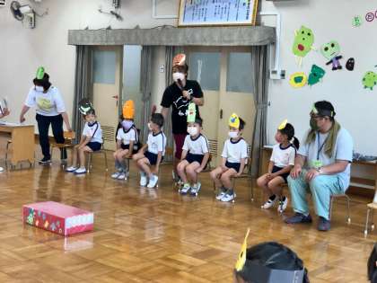 今月は、子どもも大人もみーーーんなマメのお面…『マメン』を被って、『おまめ戦隊』に大変身!!手づくりプレゼントは、マメのメダル…『マメダル』でした(^^)/