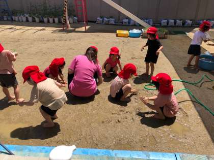 ペタペタ気持ちいい! 公開日 2022/06/09 更新日 2022/06/09 きょうのようちえん 暑さに負けず、どのクラスも水遊びや泥んこ遊びをしました! ペタペタの地面を歩いたり、お団子をつくったり… 足の裏から頭まで、水の冷たさや感触の気持ちよさを感じました(*^^*) いいね(0)