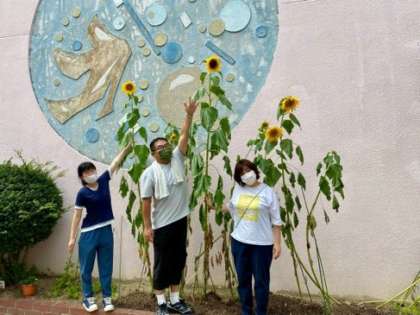 ヒマワリが咲きました(^^♪ 背がたかーくたかーくなりました!!