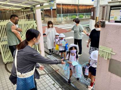 登降園が 公開日 2022/08/25 更新日 2022/08/25 きょうのようちえん 正門(玄関)からに変わりました!!始業式では、園長先生から3つの「あ(挨拶・安全・後始末)」と4つ目の「あ(遊ぶ)」を教えてもらいました! いいね(0)