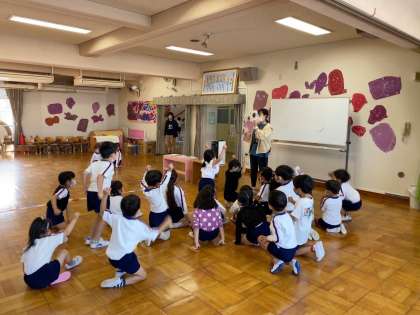 目の〇×クイズを楽しんだ後、視力検査について話をしました👀変身メガネと『ランドルト環ハンドル』を使って、視力検査スタート!!