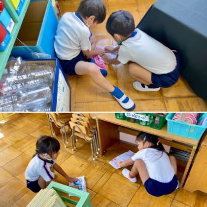 作品展まであと少し! 公開日 2022/11/24 更新日 2022/11/24 きょうのようちえん お客さま(おうちの人や異年齢の友達など)をお迎えする準備を始めました(^^♪みんなが見て回りやすい道をつくったり、床をピカピカにしたり!見に来てくれるのが楽しみですね♪ いいね(0)