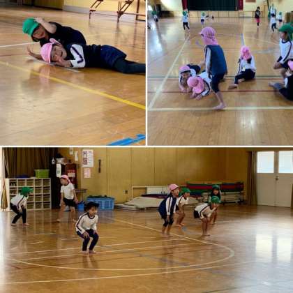ひろ〜い三軒家西小学校の体育館で 公開日 2022/12/02 更新日 2022/12/02 きょうのようちえん 思いきり体を動かして遊びました! ♪いろいろ何色〜の『色鬼遊び』と長縄跳びなどの好きな遊びが楽しかったね! いいね(0)