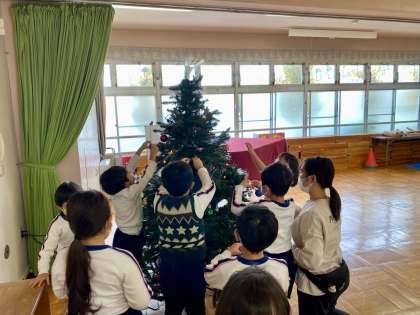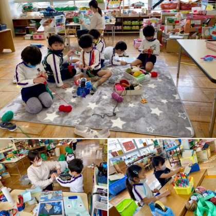 サンタさん、見てくれるかな?と、もみの木の飾り付けをしたり、もちつきの用具を見たり、マフラーを編んだり…冬ならではの楽しい遊びがいっぱい(*^^*)