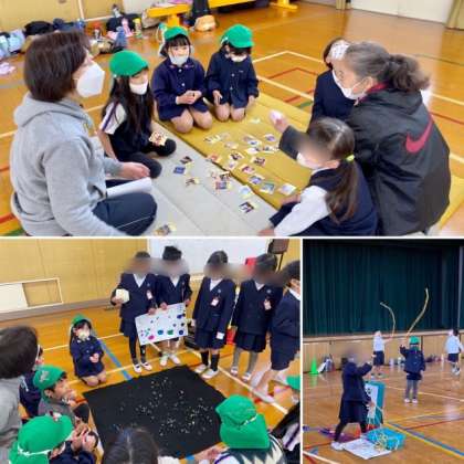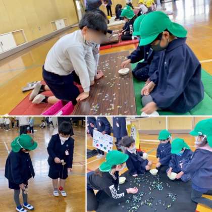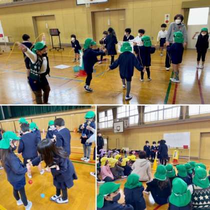 『わくわくむかしあそび』の授業に参加しました(*^^*)大浪保育所や大正ゆめの樹保育園の友達も一緒に1年生になった気持ちで、昔遊びを楽しみました!楽しかったですね♪1年生になるのが楽しみですね☆