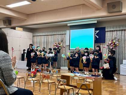 16日の保育修了式で、5歳児が幼稚園を巣立っていきました。