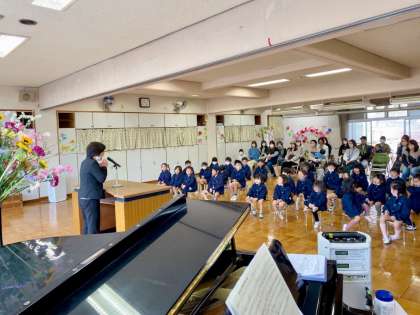 あっという間の1年でしたね(^^) 公開日 2023/03/24 更新日 2023/03/24 きょうのようちえん 4歳児と3歳児とおうちの人たちが集まり、3学期の終業式を行いました!園長先生から1人ずつ進級証書をいただきました!うれしかったですね☆1つ大きい組さんになるのが楽しみですね(^^)/ 今年度も本園の教育活動にご理解とご協力をいただき、誠にありがとうございました。4月からも、どうぞよろしくお願いいたします✨ いいね(0)