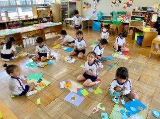 進めています🎏先週、体としっぽづくりを楽しんだ5歳児!今日は、遠くまでよ〜く見えるいろいろな色の何重にも重なった目をつくりました👀✨どんなうろこをつくるのか楽しみですね(^^♪