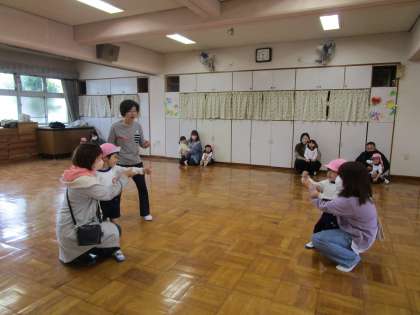 好きな遊びやふれあい遊びをみんなで楽しみました(^^)/明日は、”保育参加”最終日です♪3歳児の保護者の方、お待ちしています!