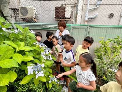 雨の止み間にみ〜つけた!! 公開日 2023/05/29 更新日 2023/05/29 きょうのようちえん 幼稚園の園庭や通用門脇でアジサイが咲いているのを見つけました♪水色や薄紫色のガクアジサイが雨に濡れてとてもきれいに咲いていましたね(*'▽') いいね(0)