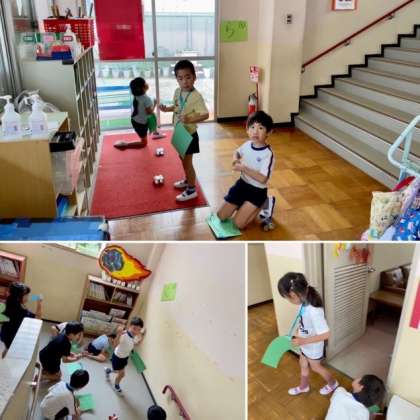手づくり双眼鏡を使って 公開日 2023/05/31 更新日 2023/05/31 きょうのようちえん 『おたからさがし』をしました!!園内を友達とくまなく探して見つけた文字は…「あ・し・た・か・ら・ろ・く・が・つ」でした👀✨また、おたからさがしを楽しみましょうね♪ いいね(0)