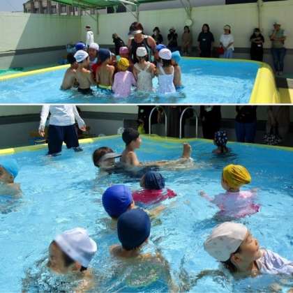 5歳児のプール参観がありました♪ 公開日 2023/07/11 更新日 2023/07/11 きょうのようちえん とてもとても良い天気の中、クラスの友達や先生と思いきりプール遊びを楽しむ姿を見てもらいました!! いいね(0)
