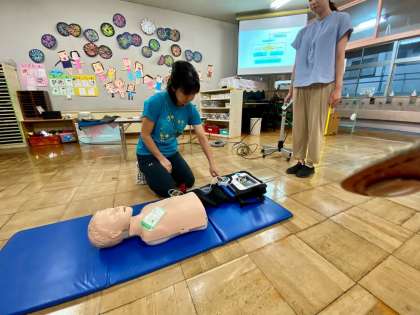 食物アレルギーやエピペンの打ち方、心肺蘇生法(AEDの使い方)、救急搬送時等を想定したシミュレーション研修を行い、安全管理や園内の環境整備などについて再確認しました!これからも、子どもたちが安心・安全に過ごせるようにがんばります✋✨